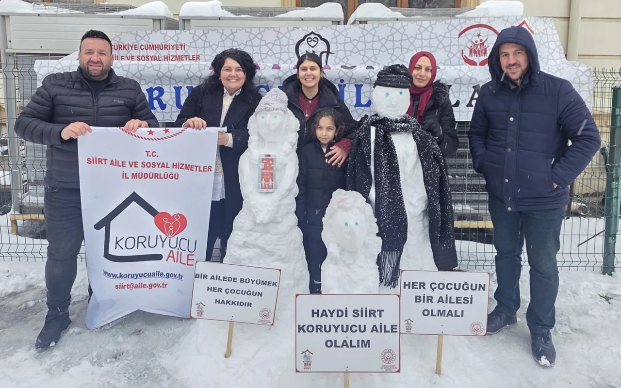 <div>Sosyal medya üzerinden paylaşılan mesajda, “Aile ve Sosyal Hizmetler İl Müdürlüğü personelleri olarak kardan bir koruyucu aile yaptık; ama aslında sevgiyle bir yuva kurduk” ifadelerine yer verildi.</div> <div>Açıklamada, koruyucu aile olmanın yalnızca bir sorumluluk değil, aynı zamanda bir çocuğun hayatına sıcaklık, kalbine güven ve yarınlarına umut katmak anlamına geldiği vurgulandı. İl Müdürlüğü, Siirtli vatandaşları koruyucu aile olmaya davet ederek, bu konuda duyarlılık çağrısında bulundu.</div>