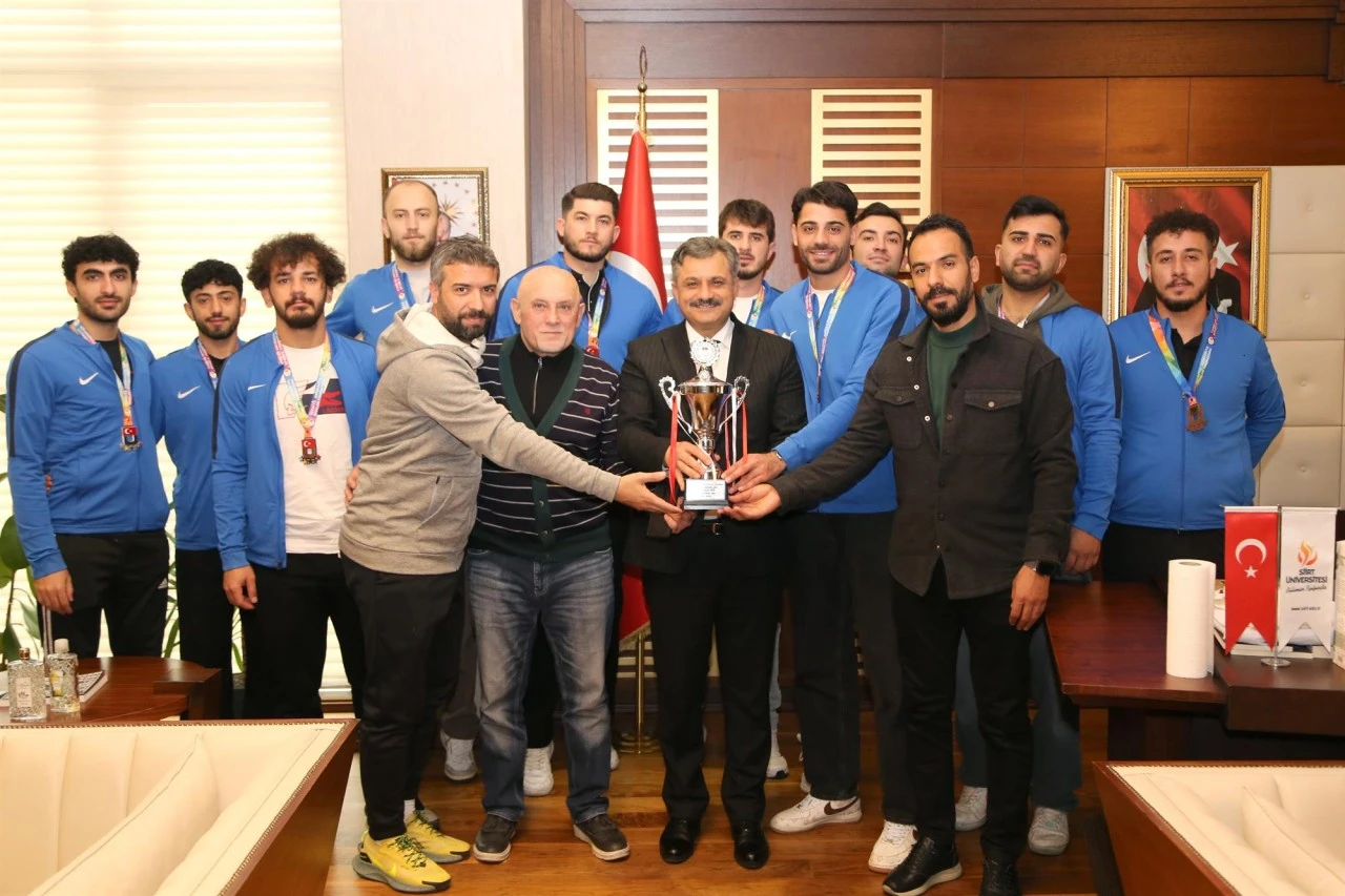 <div data-end="854" data-start="343">24–28 Kasım 2025 tarihleri arasında Adıyaman’da düzenlenen Türkiye Üniversite Sporları Federasyonu Ünilig Voleybol Grup Müsabakalarında mücadele eden Siirt Üniversitesi Voleybol Takımı, Kilis 7 Aralık Üniversitesi, Muş Alparslan Üniversitesi, Kahramanmaraş Sütçü İmam Üniversitesi, İnönü Üniversitesi ve Bitlis Eren Üniversitesi takımlarını mağlup ederek namağlup şampiyonluk elde etti. Bu önemli başarıyla takım, Mayıs ayında yapılacak Türkiye Finallerine katılma hakkı kazandı.</div> <div data-end="1008" data-start="856">Takımı makamında ağırlayan Rektör Prof. Dr. Nihat Şındak, elde edilen başarının üniversite camiasını gururlandırdığını belirterek şu ifadeleri kullandı:</div> <div data-end="1329" data-start="1010">“Üniversitemiz öğrencilerinin elde ettiği bu başarılar bizleri gururlandırmakta ve daha büyük hedeflere ulaşma konusunda motive etmektedir. Bu doğrultuda üniversite yönetimi olarak sporcularımıza her türlü desteği vermeye devam edeceğiz. Başarıda emeği geçen tüm sporcularımızı ve hocalarımızı gönülden kutluyorum.”</div> <div><strong> </strong></div>