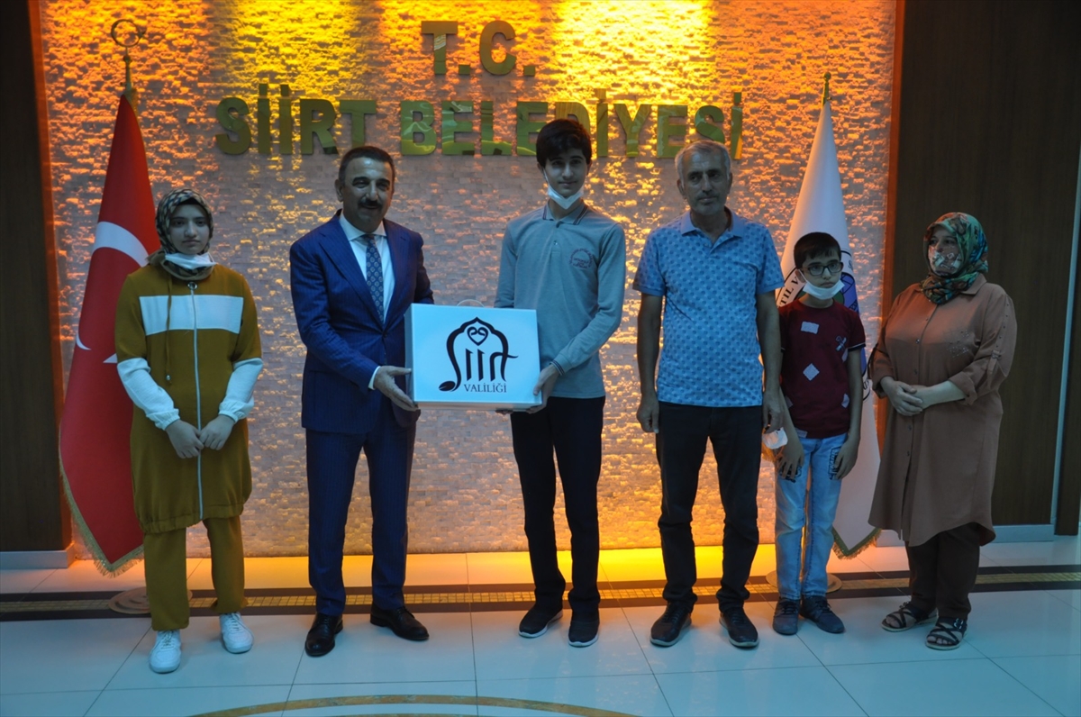 <div>Belediyeden yapılan açıklamaya göre, Hacıbektaşoğlu, Kurtalan Selahaddin Eyyübi İmam Hatip Ortaokulu öğrencisi Safo'yu ve ailesini makamında kabul etti.</div> <div>Öğrenci ve ailesini kutlayan Hacıbektaşoğlu, başarının devamını diledi.</div> <div>Hacıbektaşoğlu, Dlyar'a ve Fen Lisesine kayıt yaptırmaya hak kazanan kız kardeşi Dilan Safo'ya bilgisayar hediye etti.</div>