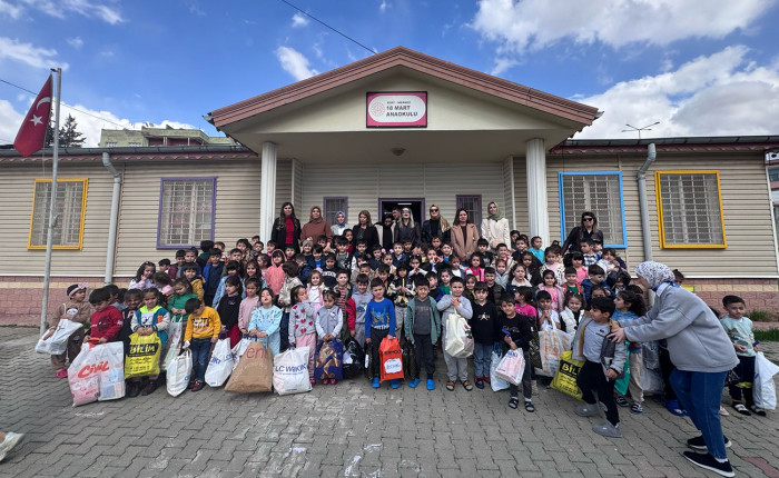 <div>Vilayetler Hizmet Birliği Anaokulu Müdürü Necla Üzüm'ün girişimleriyle "Bayramlık Elbisen Benden Olsun Projesi" hayata geçirildi.</div> <div>Yaklaşık 70 öğrenci, bir ay içinde biriktirdiği harçlıklarıyla, kardeş okul seçtikleri 18 Mart Anaokulu öğrencileri için bayramlık aldı.</div> <div>Okulu ziyaret eden öğrenciler, akranlarına bayramlıklarını dağıttı.</div> <div>Okul Müdürü Üzüm, bu çalışmanın öğrencilerde paylaşma ve dayanışma bilincini artırdığını söyledi.</div> <div>Hazırlanan paketlerde kız ve erkek öğrenciler için ayakkabı, elbise, mont ve şeker yer aldığını belirten Üzüm, "Dayanışma ve paylaşma ruhunun daha küçük yaşlarda aşılanan öğrencilerimizin bu faaliyeti diğer okullara da örnek teşkil edeceğine inanıyoruz. Bu projede emeği geçen tüm arkadaşlarımıza teşekkür ediyorum. Bu tür çalışmalarımız devam edecek." diye konuştu.</div> <div> </div> <div>(AA)</div>