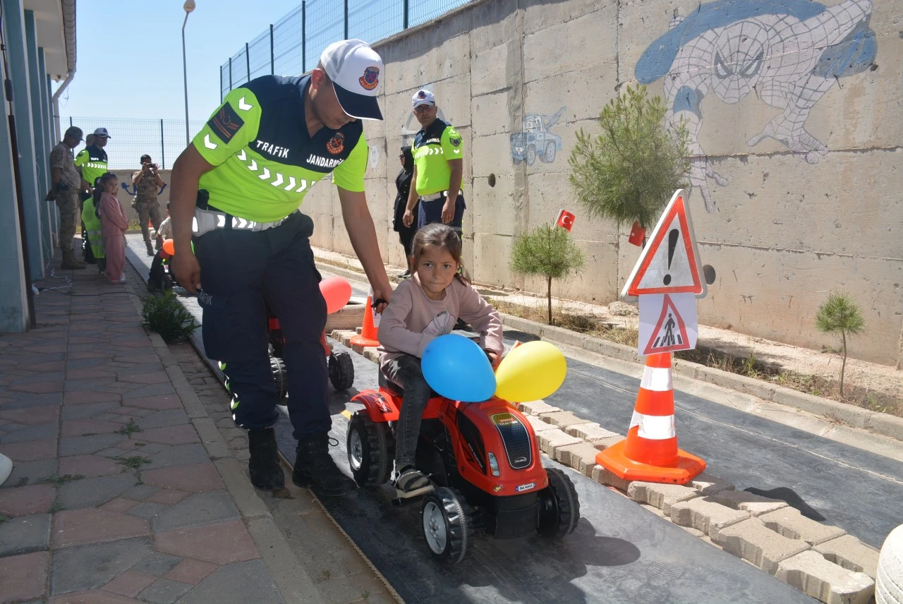 <div>İlçe Jandarma Trafik Komutanlığı ekipleri, Çalışkan Anaokulundaki öğrenciler için okul bahçesinde trafik parkuru oluşturdu.</div> <div>Trafik işaretleri, trafik lambası, yaya geçidi ve yol çizgileri bulunan parkurda çocuklar, pedallı araçlara binerek trafik kurallarını öğrendi.</div> <div>Uygulamalı eğitimin ardından trafik işaretlerinin tanıtımı yapıldı.</div> <div>Ekipler, Trafik Haftası dolayısıyla etkinliğin düzenlendiğini, etkinlikle miniklerde farkındalık oluşturmayı amaçladıklarını belirtti.</div> <div>Çalışkan Anaokulu Müdürü Melike Zeren de ekiplere teşekkür etti.</div> <div></div> <div>(AA)</div>