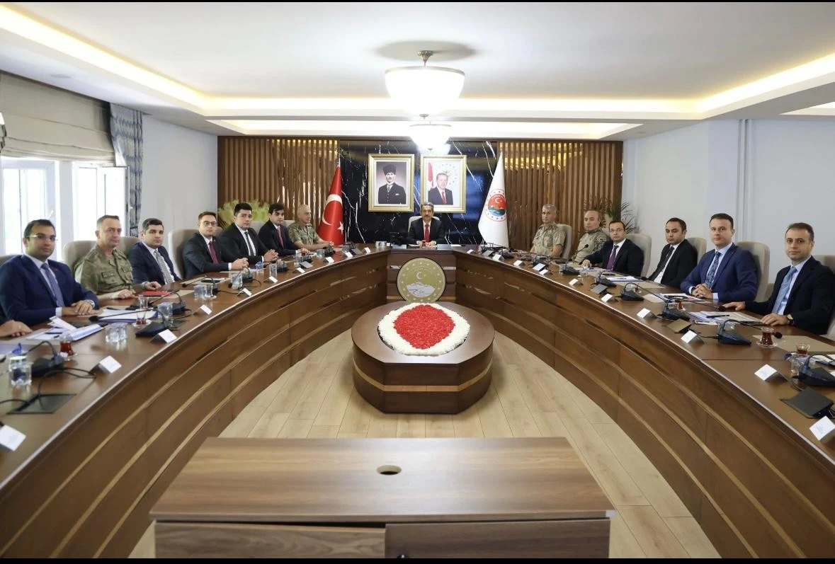 <div>Vali Birol Ekici başkanlığında Valilik Toplantı Salonunda gerçekleştirilen toplantıda, asayiş, genel güvenlik, uyuşturucuyla mücadele, terör, düzensiz göç, aile içi ve kadına yönelik şiddetle mücadele ile trafik tedbirleri konuları görüşüldü.</div> <div>Toplantıya, Vali yardımcıları Muhammet Çiftci ve Murat Çiçek, 172. Zırhlı Tugay Komutanı Tuğgeneral Osman Akyıldız, Cumhuriyet Başsavcısı Hayrullah Şahin, İl Jandarma Komutanı Tuğgeneral Mevlüt Dirim, İl Emniyet Müdürü Serdar Büyükleblebici, kaymakamlar ve kurum müdürleri katıldı.</div> <div>(AA)</div>