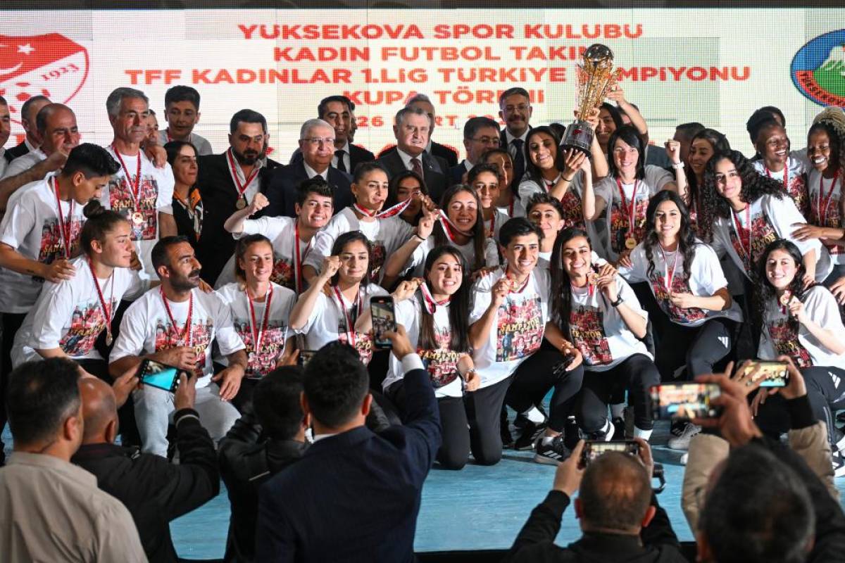 <div>HAKKARİ (AA) - Hakkari'nin Yüksekova ilçesinde, Türkiye Futbol Federasyonu (TFF) Kadınlar. 1. Ligi'nde şampiyon olarak Turkcell Kadın Futbol Süper Ligi'ne yükselen Yüksekovaspor için Mili Savunma Bakanı Yaşar Güler, Gençlik ve Spor Bakanı Osman Aşkın Bak ile Tarım ve Orman Bakanı İbrahim Yumaklı'nın katılımıyla kupa töreni düzenlendi.</div><div>Yüksekova Spor Salonu'nda gerçekleştirilen törende konuşan Güler, Yüksekovaspor oyuncularını tebrik ederek başarılar diledi.</div><div>Geçen yıl 1. Lig'e yükselme başarısı gösteren takımın, bu sezon da hem lig aşaması hem de play-off grubunda üstün bir gayret ortaya koyarak Süper Lig'e yükseldiğini belirten Güler, Yüksekovaspor'un üst üste iki farklı ligde şampiyonluk elde ederek kadın futbolunda ve Hakkari'de tarihe geçtiğini vurguladı.</div><div>Takımın hem lig hem de play-off maçlarını yakından ve heyecanla takip ettiğini ifade eden Güler, sözlerini şöyle sürdürdü:</div><div>"En son zaferi getiren pazar günkü maçta da üstün bir performans sergilediniz. Sizlerle ne kadar gurur duyduğumuzu bir kez daha ifade ediyorum. Elbette ki bu başarının arkasında kulüp yöneticilerinin, teknik ekibin ve kıymetli ailelerinizin büyük payı var. Bu vesileyle takımınızın başarısı için büyük emek sarf eden başkanımıza, antrenörlerimize ve değerli ailelerinize de özellikle teşekkür ediyorum. Değerli evlatlarım, sizlerin başarısı yalnızca bir kupa kazanmak değildir. Bu, Yüksekova'da yükselen umut dolu bir başarı hikayesinin ve kadınların sahada olduğu kadar hayatta da ne kadar güçlü olabileceklerinin de bir ispatıdır."</div><div>- "Bizlere tarifsiz gurur yaşatıyorsunuz"</div><div>Yüksekovaspor oyuncularının sadece sporcu değil, aynı zamanda rol model olduğunu dile getiren Güler, "Çocuklara, genç kızlarımıza hatta yetişkinlere 'ben de yapabilirim' dedirten bir ilham kaynağı oldunuz. Öyle ki elde ettiğiniz sportif başarılarla kızlarımızın ve kadınlarımızın spora katılımını teşvik ediyor, onlara örnek oluyorsunuz. Bu çerçevede Hakkari'mizin, Yüksekova'mızın değişen ve gelişen yüzünü sizler temsil ediyorsunuz. Bölgemizin terör belasından arındırılmasıyla sizler gibi azimli ve yetenekli gençlerimiz, sahip oldukları yüksek potansiyeli özgürce ortaya koyma fırsatı bulmuştur. Artık hayal etmekle kalmıyorsunuz. Hayallerinizi sahada, pistte ve minderde gerçeğe dönüştürüyorsunuz. Bugün Hakkari'nin dört bir yanından çıkan sporcular farklı branşlarda ulusal ve uluslararası arenalarda elde ettikleri şampiyonluklar ve derecelerle bizlere tarifsiz gurur yaşatıyor." diye konuştu.</div><div>- "Geleceğe dair umutlarımız daha da büyüyor"</div><div>Mergabütan Kayak Merkezi'nin, Hakkari'de kayak sporunun gelişmesine büyük katkı sağladığını vurgulayan Güler, kentin birçok yarışmaya ev sahipliği yaptığını anımsattı.</div><div>Tüm sporcuların, hem Hakkari'nin hem de ülkenin iftihar kaynağı olduğunu anlatan Güler, şunları kaydetti:</div><div>"Sayenizde geleceğe dair umutlarımız daha da büyüyor, yarınlara olan inancımız güçleniyor. Bugün geldiğimiz noktada hem Hakkari'miz hem Yüksekova'mız her alanda yeni yatırımlarla kalkınmaya ve gelişmeye devam ediyor. Kentte futbol ve kayak dışında diğer spor branşlarına da büyük bir ilgi var. Artık Hakkari, spor organizasyonlarıyla, özellikle kış sporları ve turizm potansiyeliyle bir cazibe merkezi olmaya başladı. Bu güzel şehrimizde yaylacılıktan doğa turizmine, ulusal ölçekli turnuvalardan kayak ve dağcılık sporlarına kadar her geçen gün organizasyon çeşitliliğinin arttığını memnuniyetle müşahede ediyoruz. Hakkari, Türkiye'nin en genç nüfusuyla her geçen gün lisanslı sporcu sayısını da artırıyor."</div><div>Hakkarili gençlerin birçok spor dalında hem ulusal hem de uluslararası müsabakalarda kenti ve ülkeyi büyük bir başarıyla temsil ettiğini söyleyen Güler, şöyle devam etti:</div><div>"Milli sporcumuz Rojda Kanat kızımız judo branşında 2024'te elde ettiği başarılara ilaveten en son 2025 Gençler Türkiye Şampiyonası'nda da birincilik aldı. Onu kutluyorum. Yine milli sporcumuz Semanur Öztunç evladımız judoda hem 2024 Ümitler Avrupa Şampiyonu hem de 2024 Gençler Türkiye Şampiyonu oldu. Onu da kutluyorum. Kayakta ise Şennur Kartal kızımız 2024 Büyük Kadınlar Kayaklı Koşu Türkiye Şampiyonası'nda altın madalya kazandı. Onu da kutluyorum. Güreşte de başarılarımız devam etti. 2024 Okul Sporları Kadın Güreş Türkiye Şampiyonası'nda Nurgül Abi, Zehra Özdemir ve Şeyda Salim birincilikler elde ettiler. Hepsini kutluyorum. Wushu kung fuda ise 2025 Türkiye Şampiyonası'nda Muhammed Hasan Çal şampiyon oldu. Onu da kutluyorum. Daha ismini zikredemediğim ve derece yaparak Hakkari'nin gururu olan sporcularımız bulunuyor. Bu vesileyle Hakkarili gençlerimizi ve tüm sporcularımızı bir kez daha yürekten kutluyorum."</div><div>Güler, Gençlik ve Spor Bakanlığının, spor tesislerinden gençlik merkezlerine, sosyal aktivite alanlarından yürüttüğü çeşitli projelere kadar birbirinden kıymetli icraatları hayata geçirerek, Hakkari'nin bu alandaki yükselişine büyük katkılar sunduğunu dile getirdi.</div><div>- "Tüm çabamız Hakkarili kardeşlerimizin huzur ve istikrar ikliminde refahlarını artırmak içindir"</div><div>Bölgenin gerçek potansiyelini ortaya çıkarmayı amaçladıklarını aktaran Güler, konuşmasını şöyle tamamladı:</div><div>"Tüm çabamız Hakkarili kardeşlerimizin huzur ve istikrar ikliminde refahlarını artırmak içindir. Kıymetli sporcularımız, başarı kolay elde edilen bir olgu değildir. Sizler uzun saatler süren antrenmanlarla, fedakarlık, istikrarlı çalışma ve takım ruhunun sahaya yansımasıyla bu sonuçlara ulaştınız