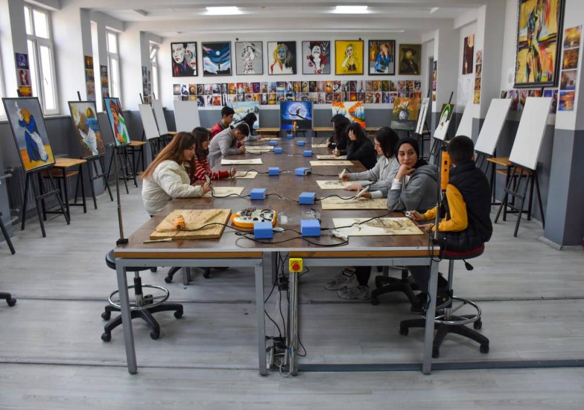 <div>VAN (AA) - ORHAN SAĞLAM - Van'da Atatürk Anadolu Lisesi öğrencileri, resim atölyesinde aldıkları eğitimle unutulmaya yüz tutan ahşap yakma sanatını öğreniyor.</div><div>Okulun resim atölyesinde bir araya gelen öğrenciler, öğretmenlerinin desteğiyle becerilerini geliştirerek, ahşap yakma sanatıyla figürler çiziyor.</div><div>Ahşap yüzeylere ince detaylarla manzara ve şehir temalarını işleyen öğrenciler, sanata dönüştürdükleri ürünlerle özgün tasarımlar ortaya çıkarıyor.</div><div>Öğrenciler, uzun uğraşlar sonucu hazırladıkları eserleri, düzenledikleri sergilerle tanıtıyor.</div><div>- "Öğrenciler bu derslere severek katılıyor"</div><div>Resim öğretmeni Hamza Durgun, AA muhabirine, renkli ve farklı bir çalışma ortamında öğrencilerle eserler ürettiklerini söyledi.</div><div>Öğrencilerin atölyede sanatın tekniklerini öğrendiğini belirten Durgun, "Çağdaş ve geleneksel Türk resim sanatlarını yaşatmaya çalışıyoruz. Bunun yanında zor ve uğraştırıcı olan ahşap yakma sanatını da icra ediyoruz. Öğrenciler bu derslere severek katılıyor. Çalışmalarımızı genelde manzara, figür ve şehirler teması üzerinde işliyoruz." dedi.</div><div>Öğrencilerin isteklerine bağlı çalışma yaptıklarını anlatan Durgun, şunları kaydetti:</div><div>"Öğrenciler yaptıkları eserleri hatıra amaçlı evlerine de götürüyor. Çalışmalarımızı sergilerle tanıtmaya çalışıyoruz. Öğrenciler ahşap yakma sanatına ilgi duyuyor. Haftada 2 saat resim dersimiz var. Öğrenciler yoğun geçen derslerden sonra atölyede dinlenip keyifli vakit geçiriyor. Gençlerimizi teknoloji bağımlılığından uzak tutup sanata yönlendirmeye çalışıyoruz. Hafta sonları da atölyeye gelen öğrencilerimiz oluyor."</div><div>- "İleriki süreçlerde sanatımı devam ettirmek istiyorum"</div><div>Öğrencilerden Melike Almalı, "Öğretmenimiz eşliğinde ahşap yakma sanatını öğreniyoruz. Hatalarımızı zamanla düzelterek kendimizi gelişiyoruz. Üniversite sınavına hazırlanıyorum ve stresli bir süreç geçiriyorum. Bu sanata yönelmek beni dinlendiriyor. Atölyeden sonra derslerime daha yoğun çalışabiliyorum." diye konuştu.</div><div>Esmanur Turgut da üniversite sınavını kazandıktan sonra da ahşap yakma sanatıyla uğraşmaya devam edeceğini dile getirerek, "Stresimi sanatla uğraşarak atıyorum. Burada vaktin nasıl geçtiğini anlamıyoruz. İleriki süreçlerde sanatımı devam ettirmek istiyorum. Sosyal medya bağımlısı olmak istemiyorum, sanatla uğraşmak istiyorum." dedi.</div>