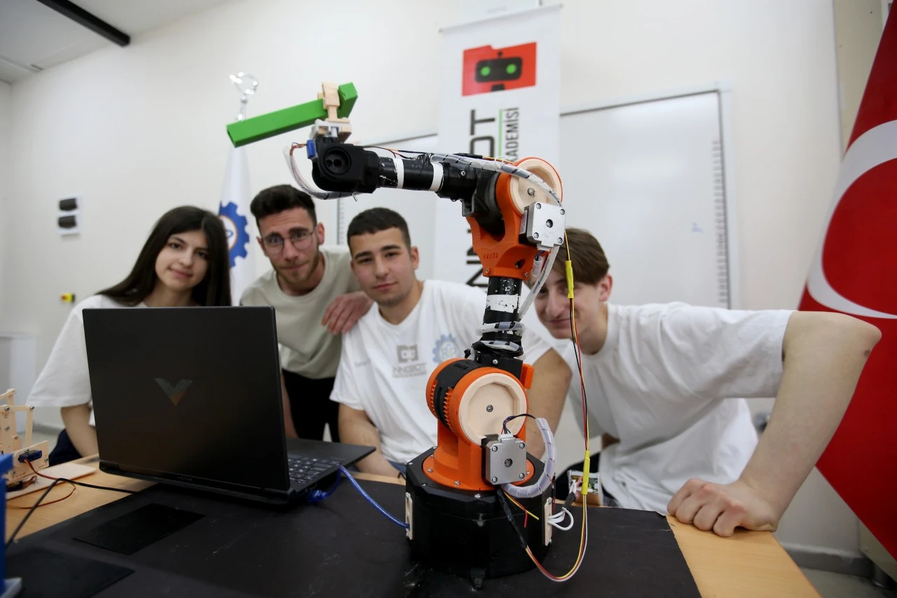 <div>Avrupa Mucitler Federasyonu Türkiye Temsilciliği bünyesindeki İnnobot Robotik Kodlama Akademisi ile Başak Fen Teknik Kolejince, renkleri ayırt ederek paketleme alanında kolaylık sağlayan Endüstriyel Robot Kol Projesi başlatıldı.</div> <div>Elektrik ve elektronik mühendisi olan Innobot Robotik Kodlama Akademisi Yazılım Öğretmeni Yusuf İzgi ve 21 öğrencisi, 4 aylık çalışma sonucu tasarladıkları endüstriyel robot kol ile 8-10 Mayıs'ta Romanya'da düzenlenen "EUROINVENT 2025 Uluslararası Buluşlar Yarışması"na katıldı.</div> <div>Vanlı öğrenciler, 42 ülkeden 127 projenin yer aldığı yarışmada ilk etapta liseliler grubunda 5 kurumdan ödül aldı. Öğrencilerin tasarladığı proje, daha sonra jüri üyelerince üniversiteliler arası klasmana çıkarıldı.</div> <div>Burada yapılan değerlendirmelerde de Vanlı öğrencilerin projesi birincilik ödülüne layık görüldü. Projede yer alan 21 lise öğrencisi de Romanya ve Belçika'daki devlet üniversitelerine "kabul" aldı.</div> <div>- "Bu sene ilk kez biz birinci olduk"</div> <div>İzgi, AA muhabirine, yarışmaya davet alır almaz projeyi geliştirme çalışmasına başladıklarını söyledi.</div> <div>Yarışmaya 42 ülkeden 127 takımın katıldığını belirten İzgi, şunları kaydetti:</div> <div>"İlk etapta inovasyon ve yaratıcılık kategorisinde liseliler grubunda yarıştık ve 5 farklı kurumdan ödül aldık. Jüri üyeleri sanayi alanında kullanılacak pratik bir robot kol gördükleri için çok şaşırmışlardı. Bizi üniversiteliler arası değerlendirmeye kabul ettiler. Bu yarışmada 9 yıldır Moskova Üniversitesi birinci oluyormuş. Bu sene ilk defa biz birinci olduk. Çok heyecanlıyız. Bu başarının sonucunda 2 farklı üniversiteden toplam 21 öğrencinin kabulünü aldık. Öğrencilerimiz Belçika ve Romanya'da devlet üniversitelerinde okuyabilecekler. Bu proje sayesinde gerçekleşti."</div> <div>Projenin çok fazla işçiye ihtiyaç duyulmadan kargolama ve paketleme alanında kullanılabildiğini anlatan İzgi, şu bilgileri verdi:</div> <div>"İki farklı yazılım dili kullandık; Arduino ve Python. Pythonda görüntü işleme kısmını yapıyoruz. 3 farklı rengimiz var; mavi, kırmızı ve yeşil. Kamera bu 3 rengi ayırt ettikten sonra robot kolun eksenlerine komut gönderiyor. Bu komutlar sayesinde robot kol hareket ediyor. Mavi parçayı algıladıysa alıp ilgili bölmeye, kırmızı parçaysa alıp ilgili bölmeye yerleştiriyor ve bu şekilde devam ediyor. İlerleyen zamanda renkten ziyade barkot sistemine dönüştürmeyi planlıyoruz. Projemizi kargo şirketlerinin kullanımına sunmayı hedefliyoruz."</div> <div>İzgi, kargo şirketlerinde zamanın çok önemli olduğunu dile getirerek, "Ülkemizde benzer cihazlar var ama hepsinin kullanıldığı alanlar farklı. Bizim farklılığımız yazılım, yani görüntü işleme kısmı oluyor. Görüntü işleme sayesinde mekanik kısmına komut gönderebiliyoruz. Araba sektöründe robot kollar kullanılıyor ancak hazır parçayı alıp yerleştiriyor. Yani yazılımında bir değişiklik olmuyor. Bizim en büyük avantajımız, kendi kendine karar verebiliyor ve parçayı nereye koyarsak koyalım yeni yazılım istemeden bunu hesaplıyor, ölçüyor, ona göre alıp yerleştirebiliyor." diye konuştu.</div> <div>- "Avrupa'nın en büyük yarışması"</div> <div>Avrupa Mucitler Federasyonu Türkiye Temsilcisi Prof. Dr. Mehrdad Fojlaley de Türkiye'yi ve Van'ı bu büyük ve prestijli yarışmada temsil eden öğretmen ve öğrencilerle gurur duyduğunu belirtti.</div> <div>"EUROINVENT 2025"in 17'nci yarışmasının Romanya'nın Yaş (Laşi) kentinde yapıldığını bildiren Fojlaley, "Öğrencilerimiz robot kol projesiyle birincilik ödülüne layık görüldü. Bu yarışma, Avrupa'nın en büyük yarışması. Romanya'da ilgili bakanlığın himayesinde gerçekleşti. Tüm Avrupa ülkelerinden katılım sağlandı. Öğrencilerimiz büyük başarıya imza attı, hepsini tebrik ediyorum." açıklamasında bulundu.</div> <div>Öğrencilerden Taha Demir ise ülkeye ve Van'a böyle başarı getirdikleri için çok mutlu ve gururlu olduklarını dile getirdi.</div> <div>Projede yer aldığı için mutlu olduğunu belirten Edanur Karaçavuşoğlu, büyük başarı elde ettiklerini kaydederek, kendilerine destek veren herkese teşekkür etti.</div> <div>Okul Müdürü Mustafa Kemal Özvan da öğrencileri ve öğretmenleriyle gurur duyduklarını ifade ederek, "Yusuf hocamız ve öğrencilerimiz, okulumuzun ve Van'ın başarısını Avrupa'ya taşıdı. Hepsine teşekkür ederiz. Bizi ve Van'ı mutlu ettiler. Bu başarı bütün gençlerimizi, Van'daki öğrencilerimizi motive edecektir." ifadelerini kullandı.</div> <div></div> <div>(AA)</div>