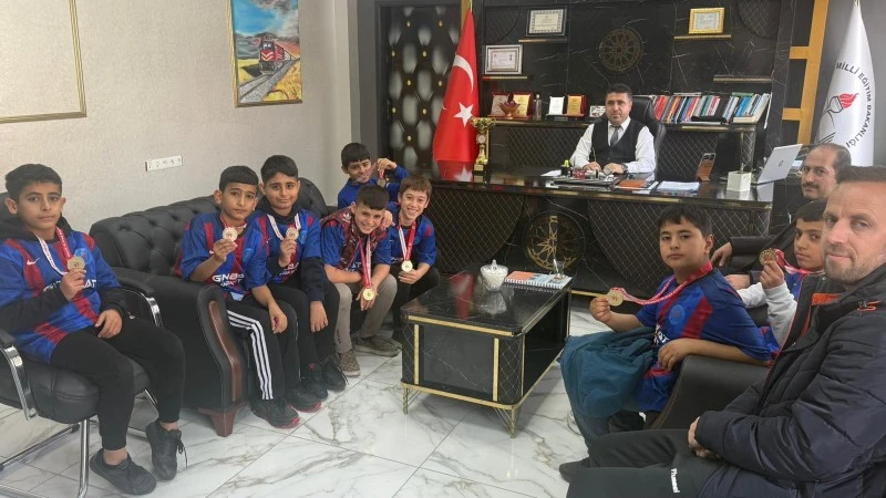 <div></div> <div>Ziyaretten duyduğu memnuniyeti dile getiren İlçe Milli Eğitim Müdürü Polat, öğrencileri tek tek tebrik ederek elde edilen başarının disiplin, azim ve takım ruhunun önemli bir göstergesi olduğunu ifade etti. Sporun öğrencilerin kişisel gelişiminde önemli bir yere sahip olduğunu vurgulayan Polat, akademik başarının sportif başarılarla desteklenmesinin eğitimi daha da güçlendirdiğini belirtti.</div> <div>Ziyaret sırasında başarılı öğrencilere çeşitli kitaplar hediye eden Faysel Polat, öğrencilerin hem eğitim hem de spor hayatlarında başarılarının artarak devam etmesi temennisinde bulundu.</div> <div>Polat, bu anlamlı başarıda emeği geçen öğrencileri, öğretmenleri ve okul idaresini tebrik ederek, okul sporlarının desteklenmeye devam edeceğini ifade etti.</div>