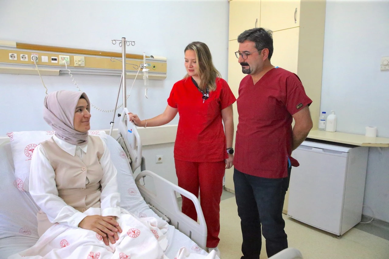 Bahçesaray ilçesi Bağcılar Mahallesi'nde yaşayan bir çocuk annesi Sakine Allahverdi, boğaz, göğüs ve baş ağrısı, halsizlik, kol ve bacaklarında güçsüzlük şikayetiyle ailesi tarafından ilçedeki sağlık kuruluşuna götürüldü. <div>Buradaki müdahalenin ardından Van Eğitim ve Araştırma Hastanesine sevk edilen Allahverdi'nin hormonlarında dengesizlik ve tiroit bezlerinde kanser tespit edildi.</div> <div>Yapılan ileri tetkiklerde ise Allahverdi'nin fazla çalışan ve kana aşırı kalsiyum salınımı yapan 2 santimetrelik paratiroit bezinin, olması gerektiği gibi boyun bölgesinde değil nadir rastlanacak şekilde kalbin üstünde aort damarının altında olduğu belirlendi.</div> <div>Tıp literatüründe az kişide rastlanan bu durum üzerine hastanın ameliyatına kararı verildi.</div> <div>Genel Cerrahi Uzmanı Opr. Dr. Müjdat Uçak, Göğüs Cerrahisi Hastalıkları Uzmanı Dr. Beniz İrem Ersoy Şığva tarafından ameliyata alınan Allahverdi'nin operasyonu 6 saat sürdü.</div> <div>Kapalı ameliyatla paratiroit bezi ile iki taraflı kanserli tiroit bezleri alınan Allahverdi, el ve ayaklarını rahatlıkla kullanmaya başladı, ağrılarından kurtuldu.</div> <div>Hastanede 7 gün kontrol altında tutulan Allahverdi, taburcu edildi.</div> <div>- "Başarılı bir ameliyat gerçekleştirdik"</div> <div>Opr. Dr. Uçak, gazetecilere, hastayı ameliyat ettiklerini belirterek, "Kapalı yöntemle 2 santimlik paratiroit ile iki taraflı kanserli tiroit bezlerini aldık. Başarılı bir ameliyat gerçekleştirdik. Tedavisi 3 gün yoğun bakım ünitesinde devam etti." dedi.</div> <div>Dr. Şığva ise 38 yaşındaki kadın hastanın 6 saat süren ameliyatla sağlığına kavuştuğunu anlatarak, "2 santimetrelik paratiroit bezi çok riskli bir yerdeydi. Kalpten çıkan büyük atar damarın altındaydı. Ameliyatı kapalı yöntemle yaptık. 3 santimetrelik kesiden girerek paratiroit bezi ile kanserli tiroit bezini çıkardık. Tıp literatüründe az kişide rastlanır. Van'da bugüne kadar hiç rastlamadık. Merkezimizde ilk kez böyle bir vakayı kapalı yöntemle ameliyat ettik. Hastanın durumu iyi, şikayetlerinden kurtuldu." diye konuştu.</div> <div>Tedavisi tamamlanan Allahverdi de sağlığına kavuşmanın mutluluğunu yaşadığını söyledi.</div> <div>Allahverdi, "Zor bir süreç atlattım. Hayatımı doktorlara borçluyum. Daha önce yürüyecek takatim yoktu. Nefes almakta güçlük çekiyordum. Sürekli yorgunluk, halsizlik hissediyordum. Şikayetlerimden kurtuldum. Şu an çok iyiyim. Doktorlardan Allah razı olsun." ifadelerini kullandı.</div> <div>(AA)</div>