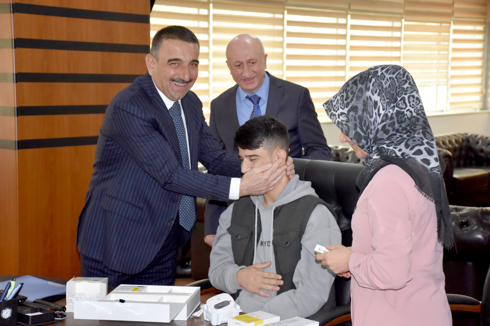 <div>Siirt Valisi ve Belediye Başkan Vekili Osman Hacıbektaşoğlu, işitme engelli Ramazan Aydın’a işitme cihazı hediye etti.Vali Hacıbektaşoğlu tarafından ağırlanan işitme engelli Ramazan Aydın ve Annesi Süreyya Aydın, desteklerinden ötürü Vali Hacıbektaşoğlu’na teşekkür ettiler.Vali Hacıbektaşoğlu, "Ramazan kardeşimizin işitme cihazına ihtiyaç duyduğunu öğrendik. İlgili müdürlüklerimiz ile görüşüp temin ettiğimiz cihazı bugün kendisine veriyoruz. Ailemiz, Sosyal Hizmetler İl Müdürlüğü ve Sosyal Yardımlaşma ve Dayanışma Vakfından yardım almaktadır. Ramazan’ın kulağındaki ses kaybının işitme cihazıyla giderilmesiyle derslere katılmasındaki zorluklar ortadan kalkacaktır. Kendisine derslerinde başarılar diliyorum. Engelli vatandaşlarımıza her zaman destek olmaya devam edeceğiz.” dedi.Anne Süreyya Aydın’da; oğlunun her iki kulağında işitme kaybı bulunduğunu belirterek, çocuğunun sağlık sorunlarıyla yakından ilgilenen Vali Osman Hacıbektaşoğlu’na ve Vakıf yöneticilerine teşekkür etti.Ziyarette, Vali Yardımcısı Abdulhamit Mutlu, Sosyal Yardımlaşma Vakfı Müdürü Aydın Şakar’da hazır bulundu. </div>