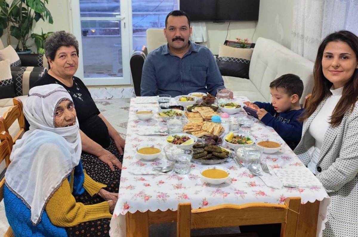 Kaymakam Türkmenoğlu, eşi Zehra Türkmenoğlu ve Sosyal Yardımlaşma ve Dayanışma Vakfı Müdürü Dursun Kara ile misafir oldukları Zübeyde Çetin ve Mutahhar Ünalan ile iftar yaptı.