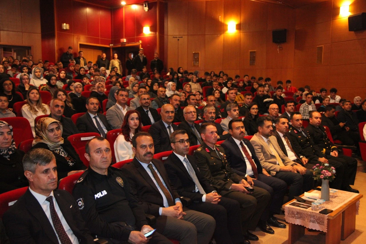 Selçuklu Fen Lisesi'nce Halk Eğitimi Merkezinde düzenlenen program, saygı duruşunda bulunulması ve İstiklal Marşı'nın okunmasıyla başladı.