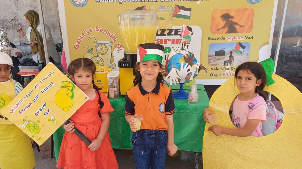 Öğrenciler, aileleriyle evde hazırladıkları limonataları okul bahçesinde kurdukları stantta satışa sundu.