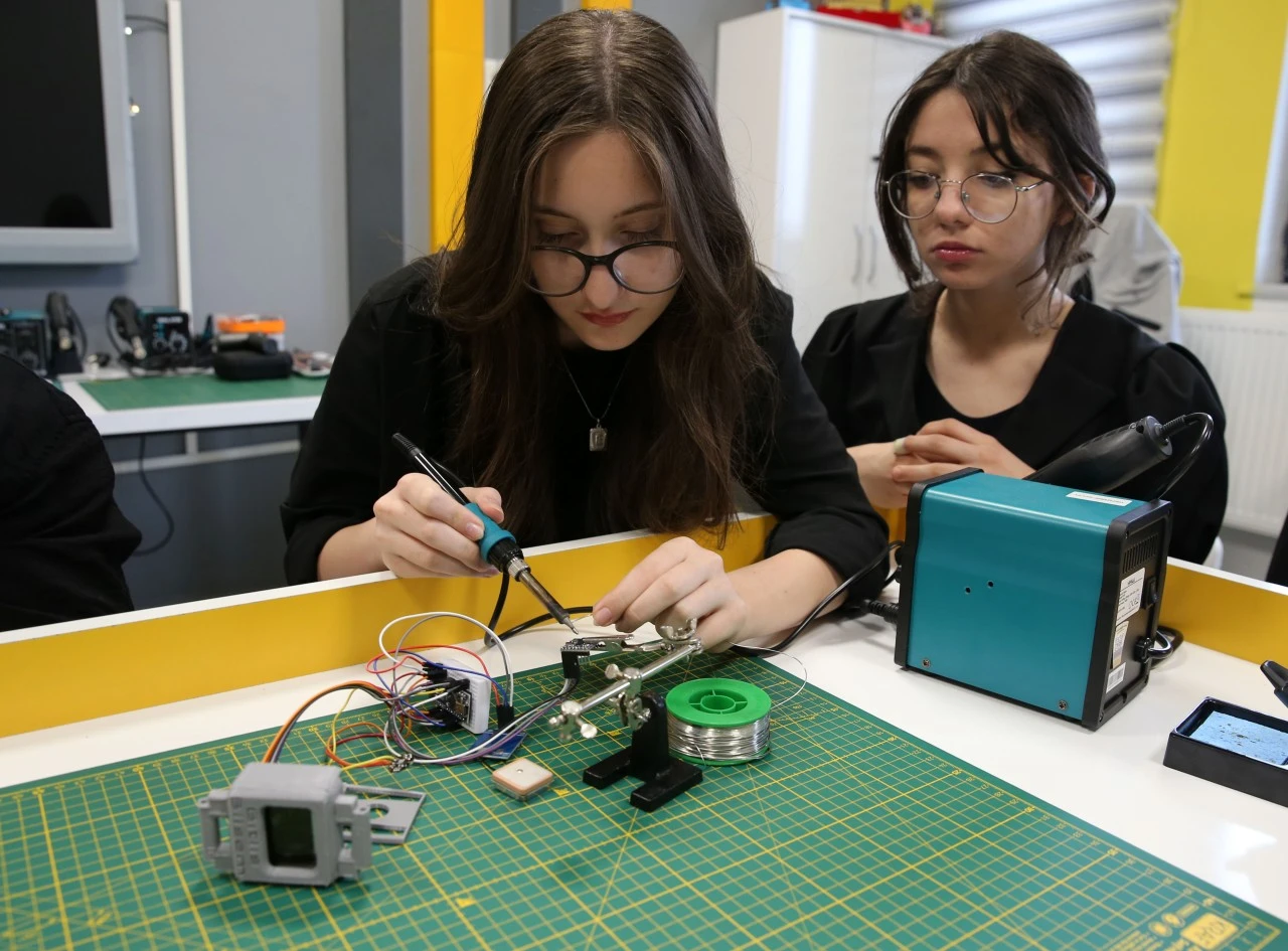 "BİLSEM olarak burada gerçek yaşam problemlerine yönelik projeler üretiyoruz. Depremden etkilenen öğrencilerimizden geçen yıl bir grup oluşturarak bir proje geliştirmeye karar verdik. Hazırladığımız projemiz TEKNOFEST'te desteklenmeye layık görüldü. Bu yıl projemizi geliştirerek yeniden TEKNOFEST'e başvurduk. Deprem sonrası enkaz altında canlarımız kalıyor. Projemiz bu canlarımızı kurtarmaya, onların yerlerini ve konumlarını tespit etmeye yönelik. Tasarlanan bileklikte GPS, kişinin yaşam belirtisinin algılanması için nabız ve oksijen, sarsıntının da algılanabilmesi için gyro sensörü bulunuyor. Şiddetli sarsıntı algılandığında kişinin hem yaşam belirtisi ve nabzı hem de konum bilgisi acil durum ekiplerine gönderilebiliyor."