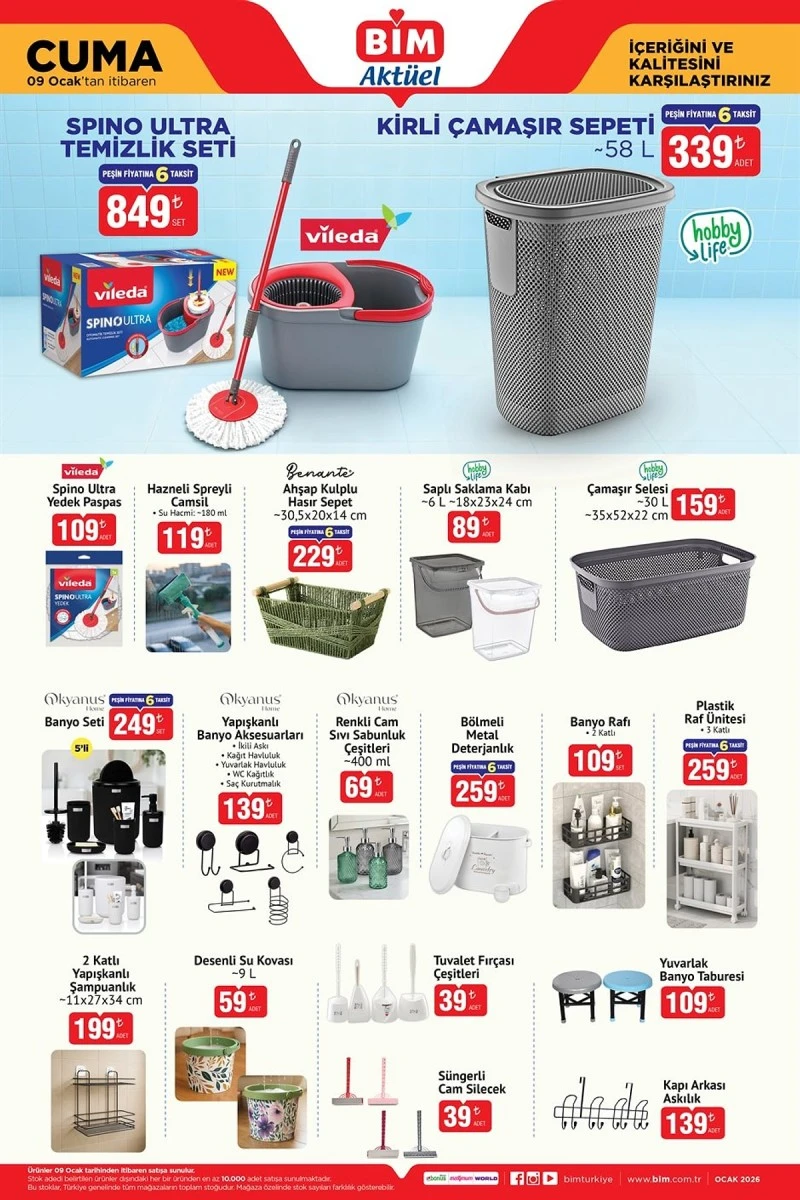 BİM aktüel ürünler kataloğunda yer alan ürünler, 9 Ocak 2026 Cuma gününden itibaren sınırlı stoklarla BİM mağazalarında satışa sunulacak. Ürünlerin mağazalara göre değişiklik gösterebileceği belirtildi.