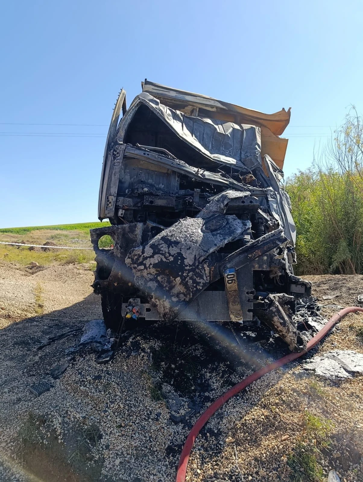 Sağlık ekiplerince yapılan kontrolde, kamyonda sıkışan sürücünün yanarak yaşamını yitirdiği belirlendi.