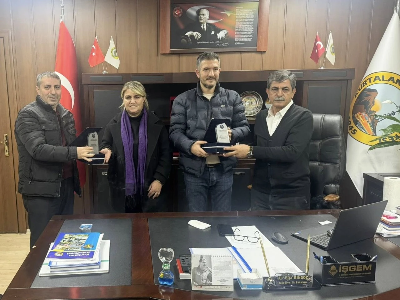 Gerçekleştirilen ziyarette kulüp yöneticileri, takımın yürüttüğü sportif faaliyetler ve devam eden çalışmalar hakkında Belediye Eşbaşkanlarına bilgilendirmede bulundu. Ziyaret kapsamında, Kurtalan Efsane Demir Spor Kulübü yöneticileri tarafından Eşbaşkanlar Ali Rıza Bingöl ve Sadiye Aktin’e plaket takdim edildi.