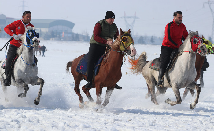 Yakutiye Belediyesi ev sahipliğinde ilçede bir arazide gerçekleştirilen yarışlar, üç grup halinde yapıldı. Toplamda 34 atın katıldığı etkinlikte, kar üstünde kıyasıya mücadele verildi.