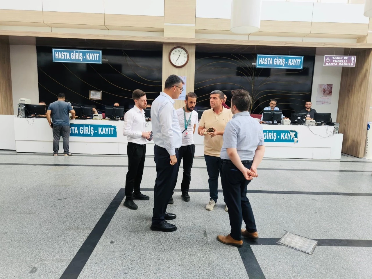 Hacıoğlu, ziyarette hastane girişindeki veri kayıt biriminde görevli personel ile görüştü, hasta kabul süreci ve işlemler hakkında bilgi aldı.