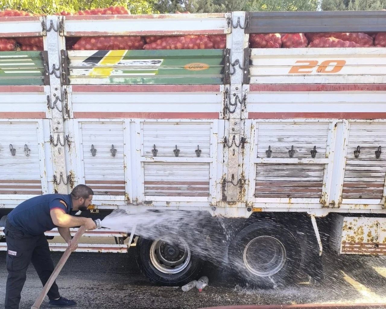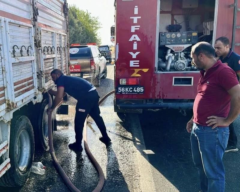 Edinilen bilgiye göre, yüklü kamyonetin fren balatalarındaki arıza nedeniyle duman yükselmeye başladı. Durumu fark eden sürücü aracı yol kenarına çekerek itfaiyeden yardım istedi.