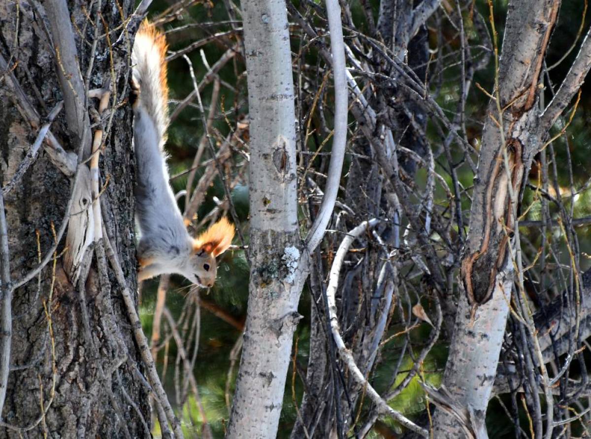 Ağaçların dallarında oynayan, kozalaklarını kemiren kızıl sincaplar, avını takip eden kerkenez, kar banyosu yapan kargalar, görüntülendi.