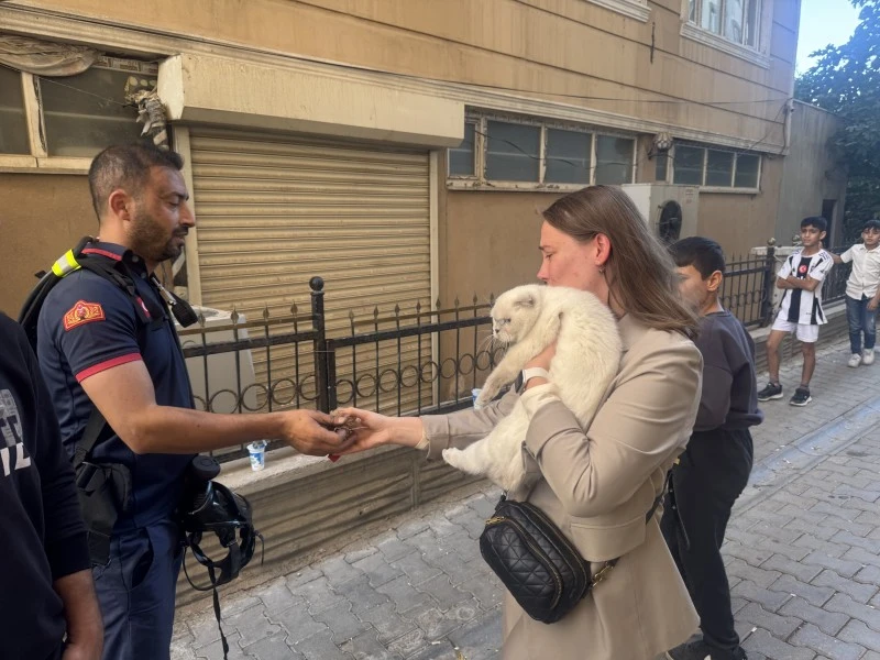 Bir apartman sakini evinde kedisinin kaldığını söyleyince, itfaiye ekipleri kediyi kurtararak sahibine teslim etti.