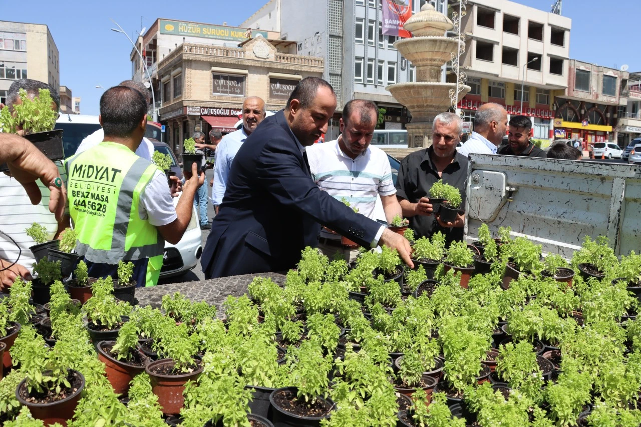 Midyat Belediye Başkan Yardımcısı Masum Cengiz ve belediye ekipleri tarafından, vatandaşlara çevre bilinci kazandırmak ve yeşil alan duyarlılığını artırmak amacıyla fesleğen ve reyhan çiçeği ücretsiz olarak dağıtıldı.