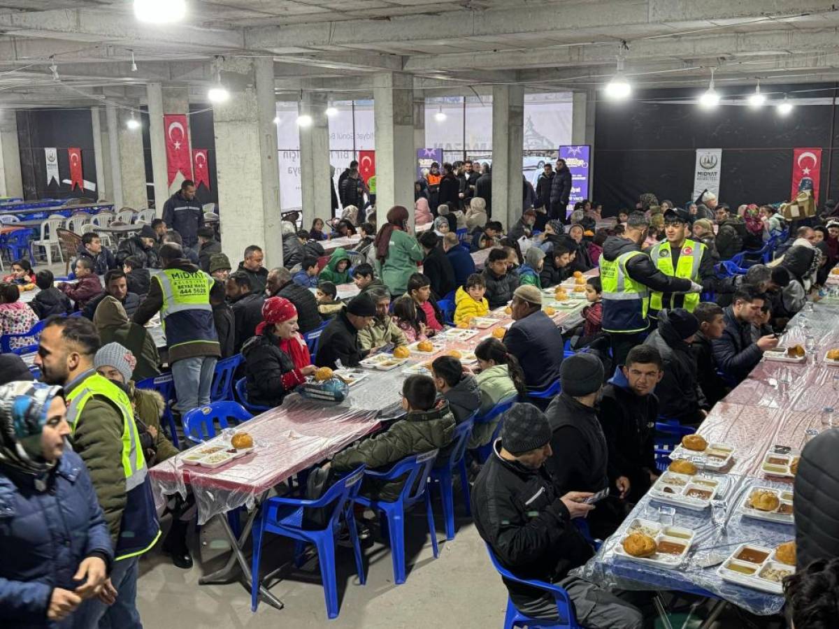 MARDİN (AA) - Midyat'ta vatandaşlar, belediyenin kurduğu iftar çadırında orucunu açtı.