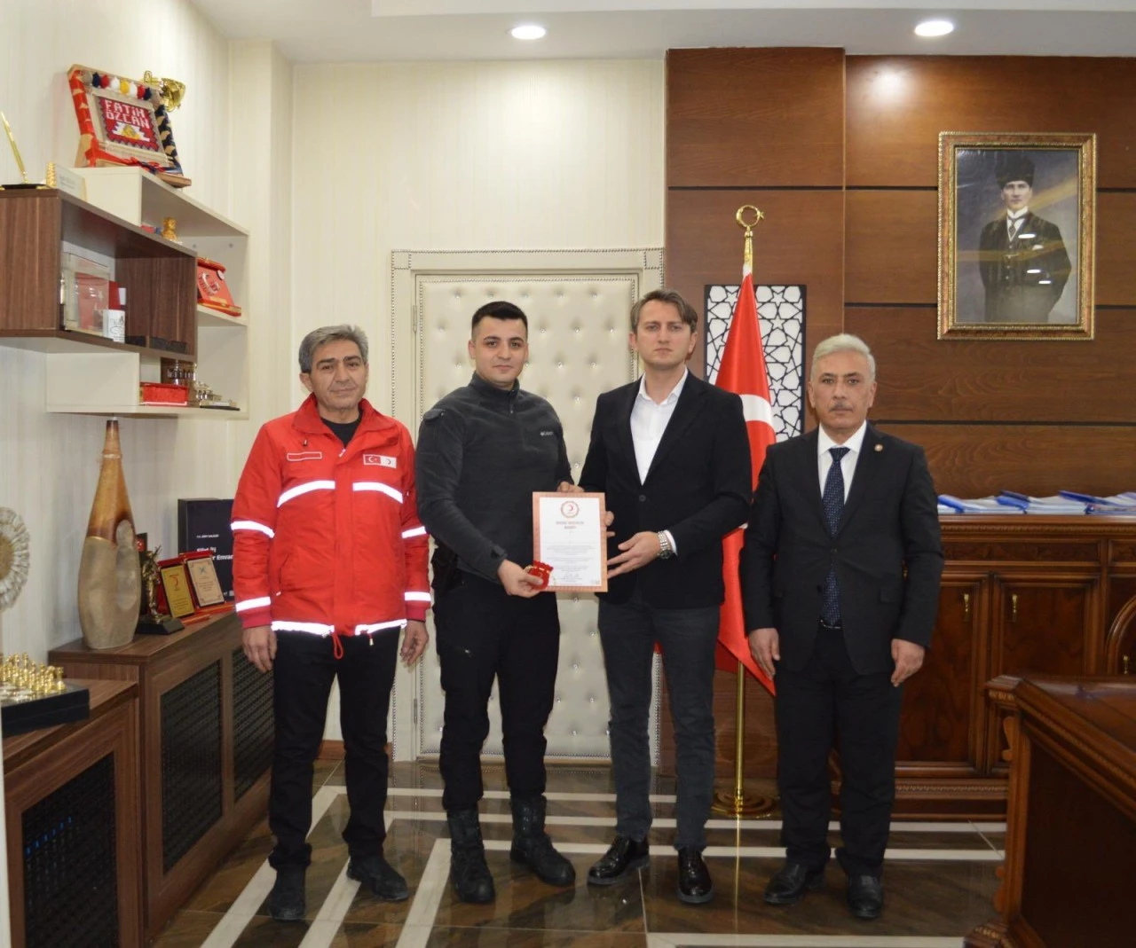 Açıklamada, Jandarma Uzman Çavuş Samet Tezcan’ın uzun süredir sürdürdüğü gönüllü kan bağışlarıyla örnek bir davranış sergilediği vurgulanarak, bu duyarlılığın Türk Kızılayı tarafından Bronz Madalya Beratı ile taçlandırıldığı ifade edildi.