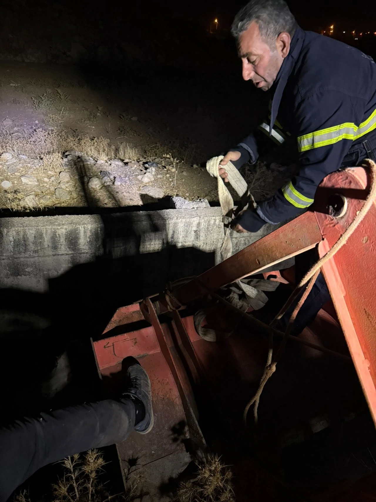 Merkez Doğan Mahallesi'nde boş arazide otlayan inek çevrede bulunan yaklaşık 2 metre derinliğindeki su kanalına düştü.