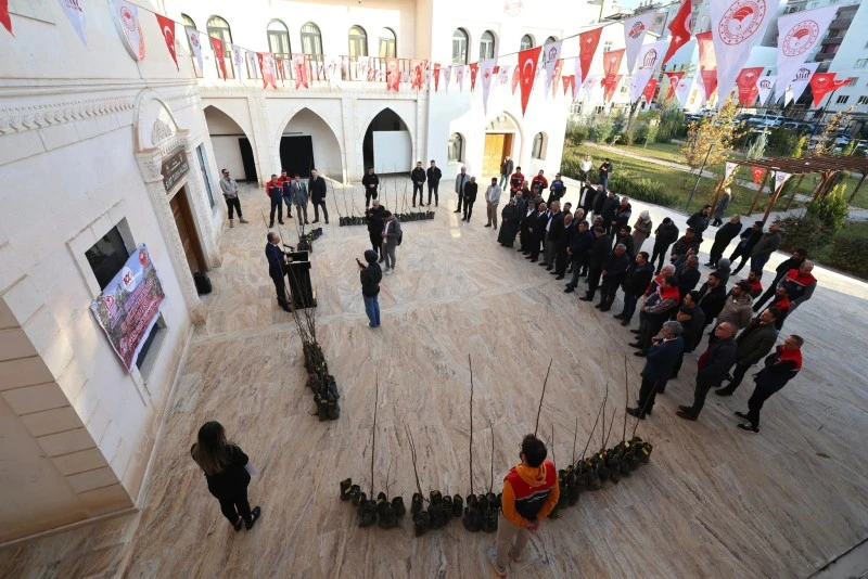 Fidan dağıtım töreni, üreticilerin yoğun ilgisiyle gerçekleştirildi.