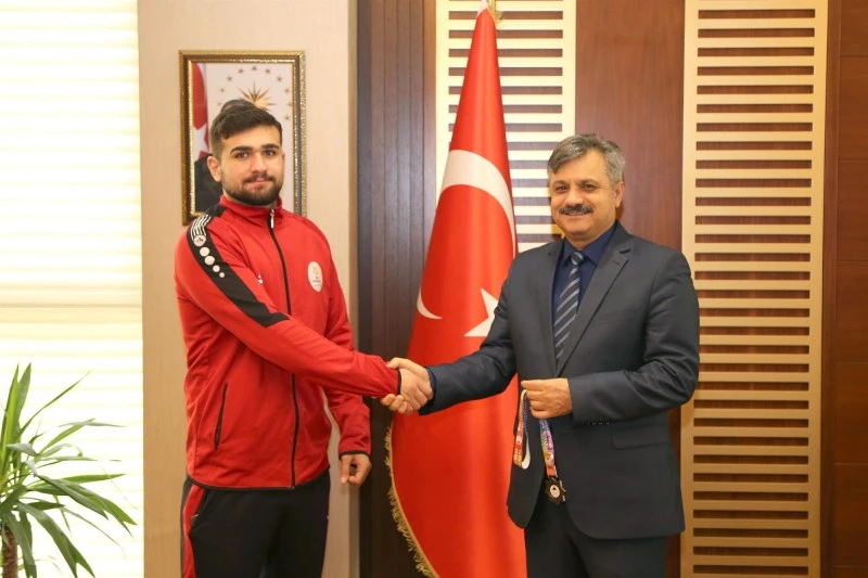 Rektör Prof. Dr. Nihat Şındak, Beden Eğitimi ve Spor Yüksekokulu’nda (BESYO) eğitimlerini sürdüren başarılı sporcular ile BESYO Müdürü Doç. Dr. Serdar Adıgüzel’i makamında kabul etti. Ziyarette üniversitenin üst yönetimi de yer aldı.