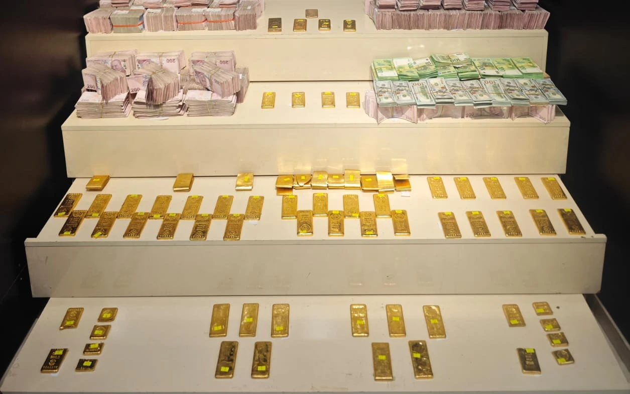 Bunun üzerine gerçekleştirilen operasyonda, 66 kilo 668 gram altın, suçtan elde edildiği değerlendirilen 9 milyon 760 bin lira, 107 bin 430 dolar, 133 bin 605 avro ele geçirildi.
