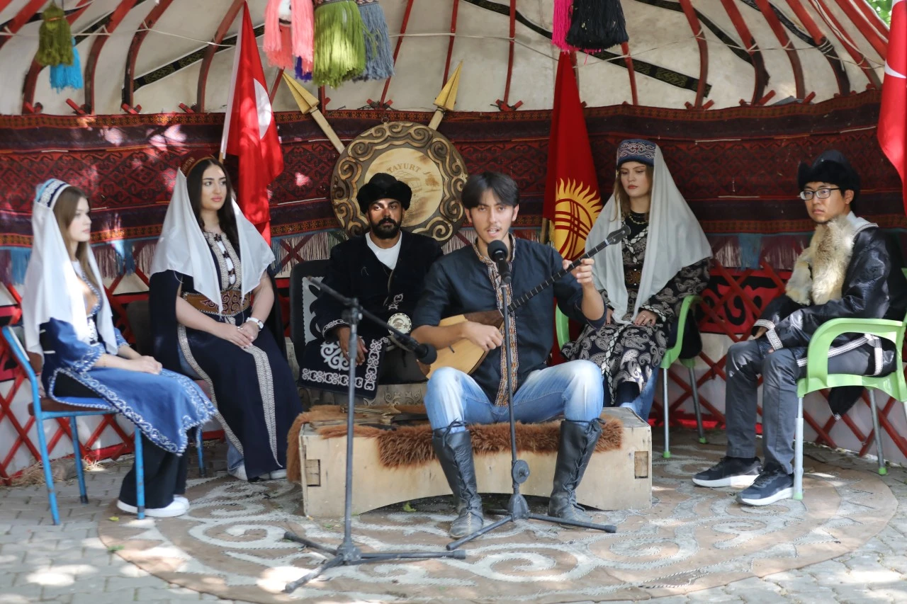 Üniversite yerleşkesindeki Tıbbi Aromatik Bitkiler ve Geofit Bahçesi'ni gezen öğrenciler, Muradiye ilçesinde Kırgız Türklerinin oluşturduğu Atayurt'ta yöresel kıyafet giydi, at binip ok attı.